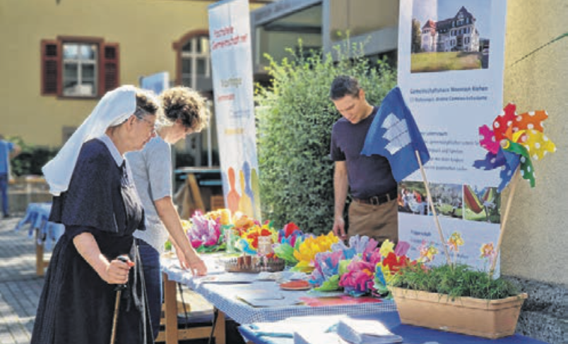 Der Gemeinschaftstag Riehen umfasste nebst Impulsreferaten und einer Podiumsdiskussion in der Kapelle auch einen Markt vor dem Geistlich-diakonischen Zentrum, an dem sich Gemeinschaften und Kommunitäten aus der ganzen Schweiz präsentierten und sich miteinander vernetzen konnten. Networking ist denn auch eines der zentralen Ziele dieses alle paar Jahre stattfindenden Gemeinschaftstages. Oder in den Worten von Co-Organisatorin Irene Widmer-Huber: «Wir wollen uns finden, ermutigen und inspirieren lassen.»